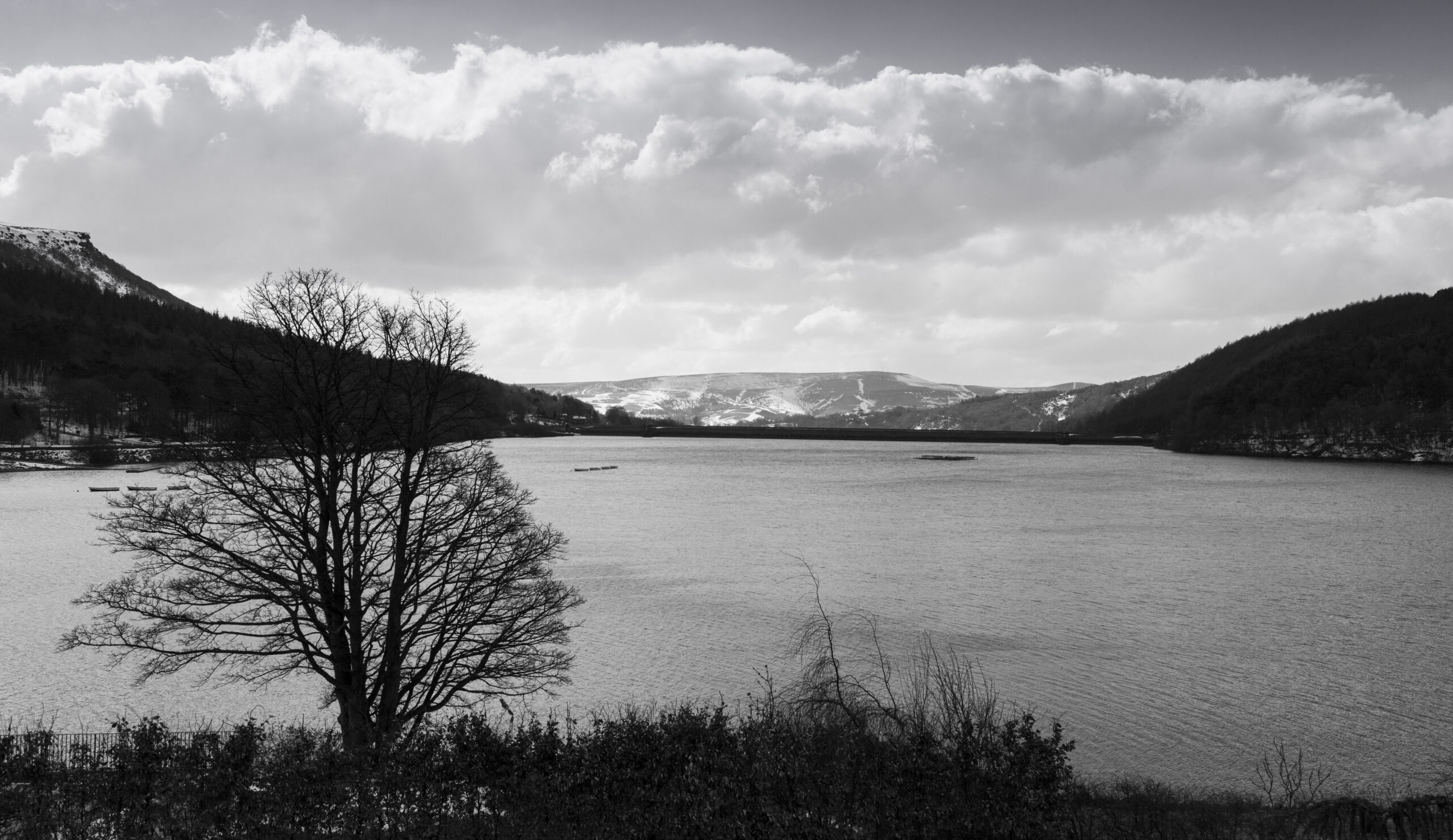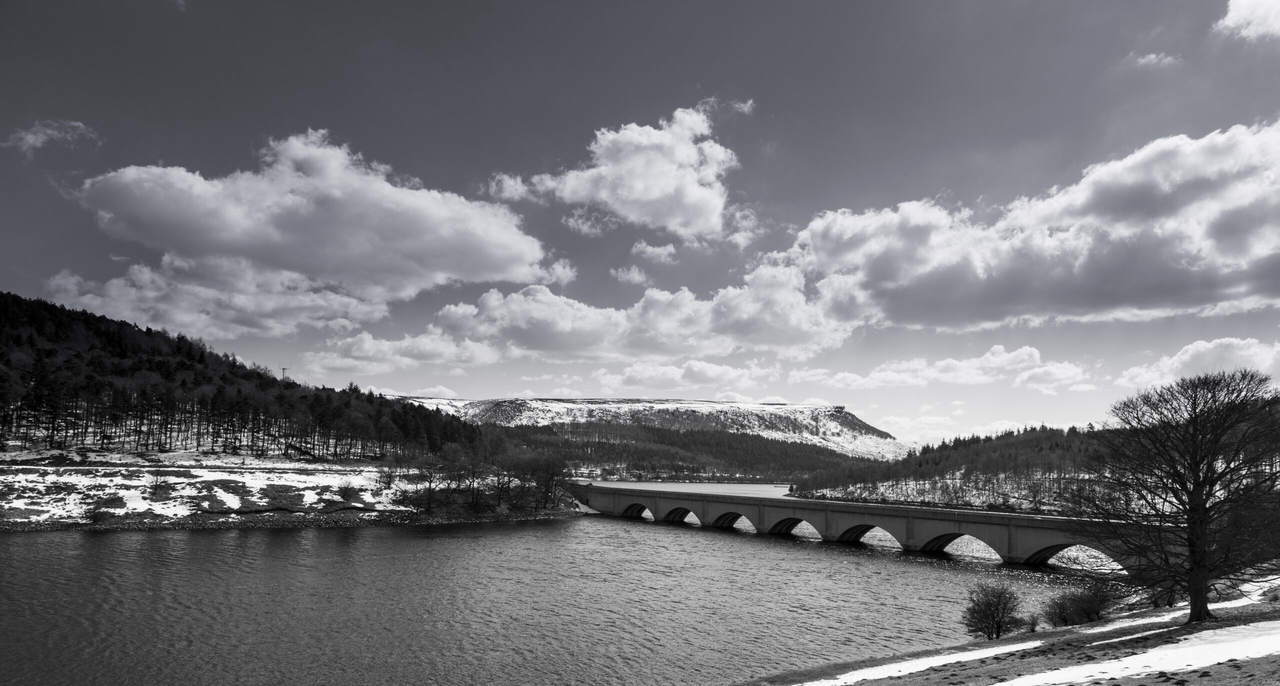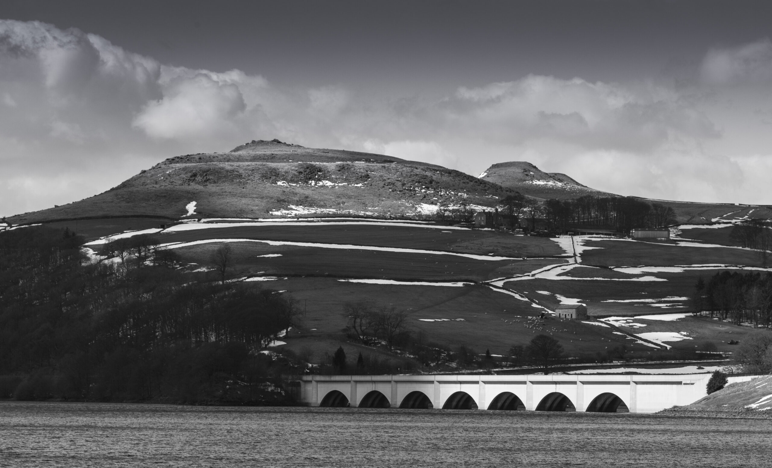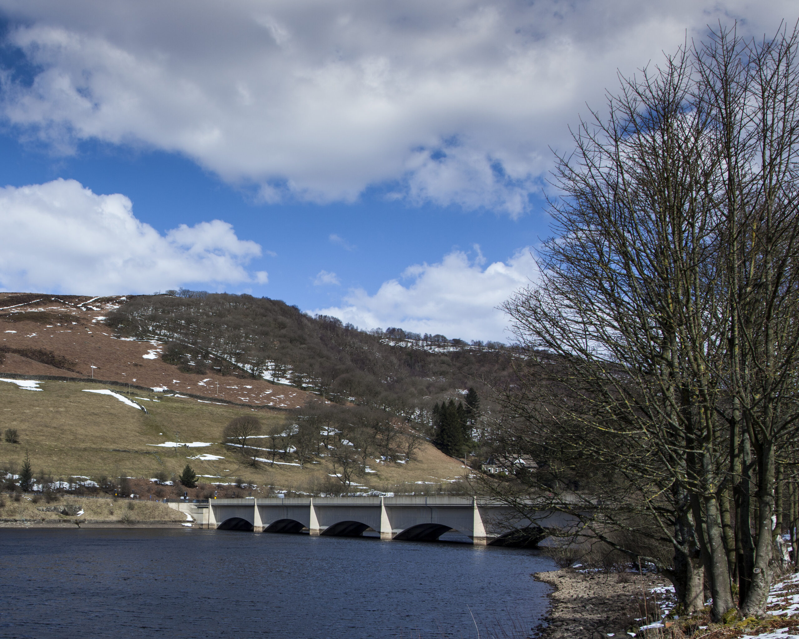 It’s April and the snow is still lighting up the scenery around the Ladybower Reservoir.